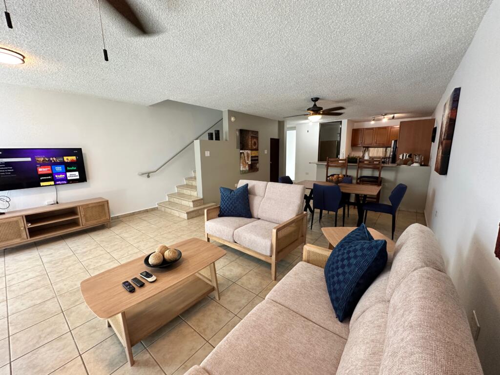 Inside, you’ll find a fully air-conditioned townhome, nicely furnished & beautifully decorated. Equipped with a full kitchen for home-style meals, complete with Wi-Fi to stay connected.