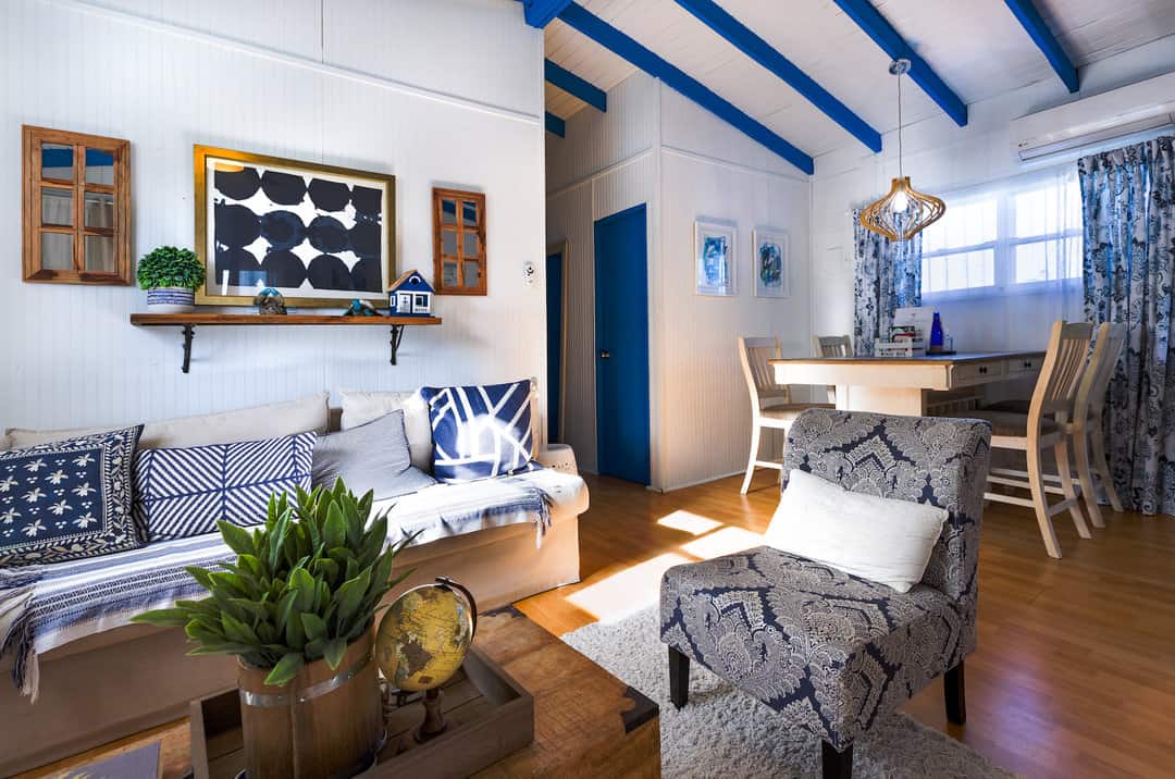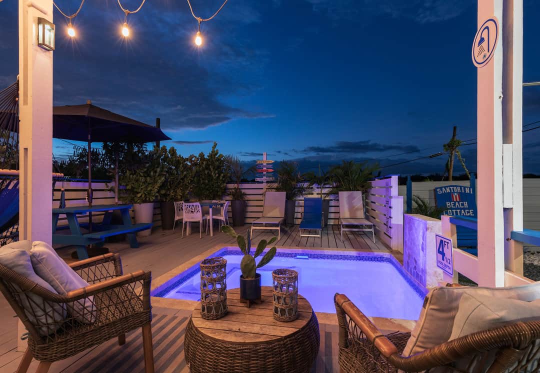 Santorini Beach Cottage is a magical, relaxing and cozy house, perfect for couples and families. Equipped with everything you might need, including a heated pool, BBQ, beach chairs, cooler, beach umbrella and more. Kitchen is nicely equipped. The house is fully air-conditioned.